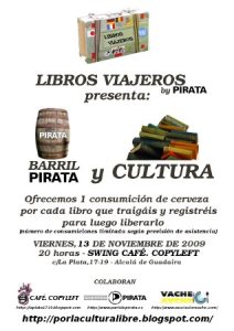 Pero en PIRATA queremos ir más allá, que el libre intercambio se realice tanto en el mundo virtual como en el mundo físico. Por tanto consideramos iniciativas gratuitas (aunque con ciertas características opcionales que no lo son) como bookcrossing (libros viajeros) realmente notables, al permitir que estos libros viajen de un dueño a otro, aportando cada uno su experiencia y enriqueciendo las sucesivas lecturas mediante los comentarios y opiniones de quienes ya los han tenido en su manos.