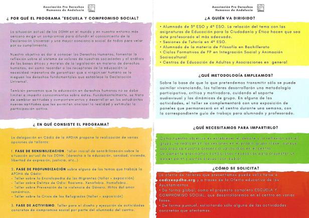 Gracias a la Asociación Pro Derechos Humanos de Andalucía, más en concreto a la de San Fernando, en Cádiz, por su colaboración en el desarrollo de los temas sobre Derechos Humanos y migración que llevamos a cabo en la asignatura de Educación para la Ciudadanía y los Derechos Humanos (ECDH) en 3º ESO. Ha sido un placer y una preciosa experiencia escucharos y dejaros compartir vuestros conocimientos y empatía con mis alumnos y alumnas.