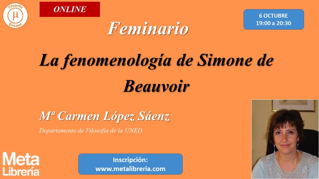 Este jueves 6 de octubre la profesora del departamento de filosofía de la UNED, Mª Carmen López Sáenz, estará virtualmente con todas las personas interesadas en participar en su Feminario «La fenomenología de Simone de Beauvoir».